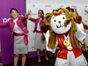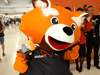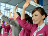 マスコットキャラクターと客室乗務員がコラボして「ひなたダンス」で祝福