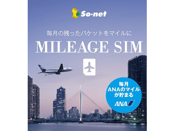 So-net、残パケットをANAマイレージクラブのマイルとして貯められる「MILEAGE SIM」の販売店舗を大幅拡大