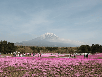 富士急の「富士山ビュー特急」に乗って、80万株の芝桜が広がる「富士芝桜まつり」へ