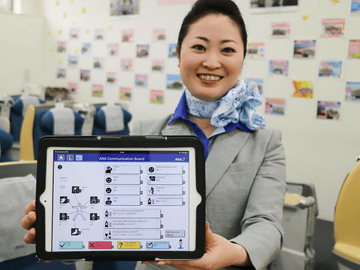 耳の不自由な人向けに筆談モードも。すべての客室乗務員が所持