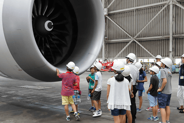 子供用ユニフォーム着用やフライトシミュレータ操縦体験も
