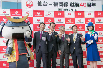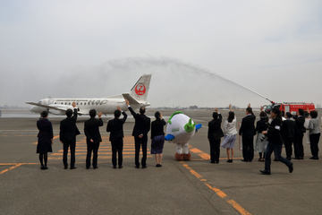 東亜国内航空がDC-9型機でスタートしたJAL 仙台~福岡線開設40周年記念セレモニー