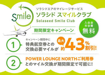 ソラシドエア、スマイルクラブ会員向けに特典航空券のマイル割引や羽田空港ラウンジ無料券の交換キャンペーン
