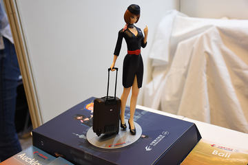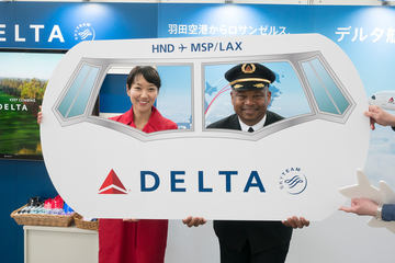 【もっと海外へ 2018】デルタ航空ブースはパイロット気分で写真撮影。シールやラゲッジタグをプレゼント