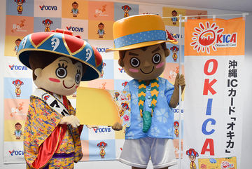 沖縄の交通系ICカード「OKICA」新デザイン発表会。花笠マハエ、マハ朗を採用