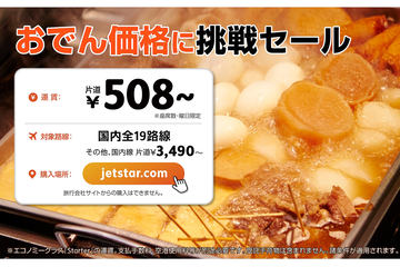 ジェットスター、国内全路線が片道508円の「おでん価格に挑戦!セール」