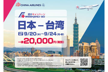 チャイナエアライン、ツーリズムEXPOジャパン2018出展に連動して日本~台湾往復が一律2万円の「週末キャンペーン」。9月20日~24日実施