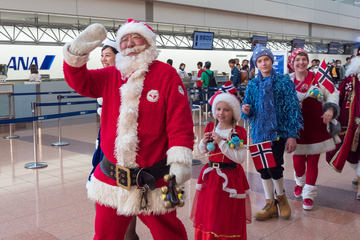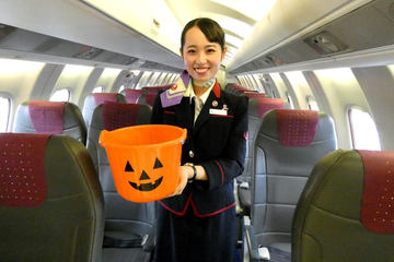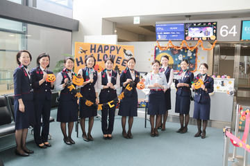 カウンターや搭乗ゲートを装飾、仮装したスタッフがチョコレートを配布