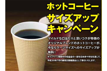 10月25日~12月下旬(予定)。コーヒー1杯につき5円を「平成30年7月豪雨災害義援金」に
