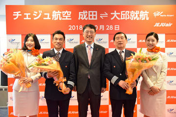 チェジュ航空、成田~大邱(テグ)線就航式典。「日本は訪れるたびにフレッシュな刺激を与えてくれる」とイ代表取締役