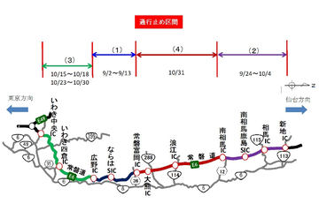 NEXCO東日本、常磐道のいわき中央IC~新地IC間で夜間通行止め