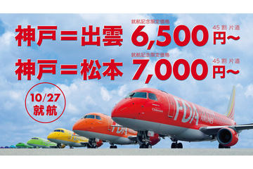 FDA、神戸~出雲線、神戸~松本線を10月27日就航。航空券を8月26日9時発売