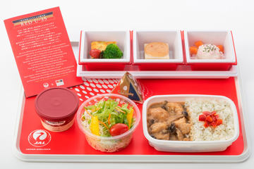 JAL、国際線・機内食で「吉野家の牛丼」。だし醤油たまご・紅しょうが・唐辛子付き