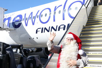 サンタクロースがフィンエアーのA350型機に乗って日本に到着