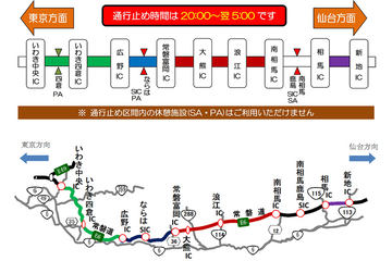 NEXCO東日本、常磐道のいわき中央IC~新地IC間で夜間通行止め