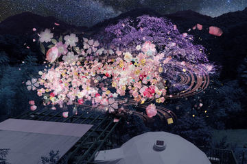 グランピング施設「日比谷花壇の“STAY”『里楽巣FUJINO』」、山森全体に夜桜を投影する特別宿泊プラン