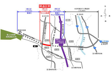 群馬県、南新井前橋線バイパスの一部区間を3月22日開通。2021年度上半期に駒寄スマートICに接続