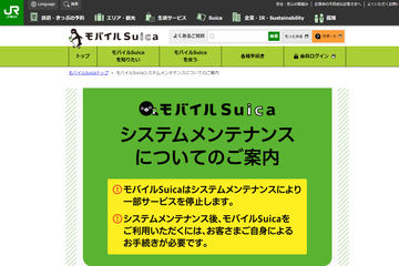 モバイルSuica、3月20日11時~21日7時に大規模なシステムメンテナンス