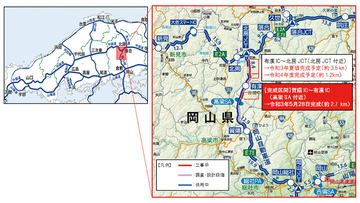 NEXCO西日本、岡山道 賀陽IC~有漢ICを5月28日一部4車線化。有漢IC~北房JCTも6月に対面通行解消