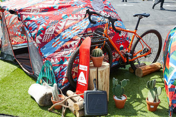 防水多機能バッグ「andback」。シート状に展開して濡れた胴長やテントの収納に