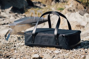 火の粉を気にせず焚き火できる難燃・撥水の帆布ギア。軍幕やバッグ、トリガーミトンなど