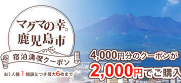鹿児島市、1施設につき最大1万2000円引き「宿泊満喫クーポン」。県の宿泊割と併用OK