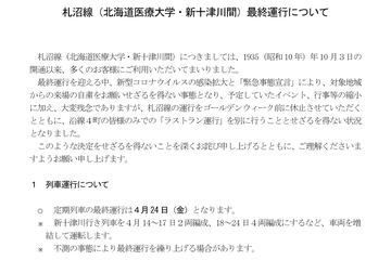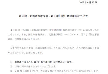 JR北海道、札沼線 北海道医療大学駅~新十津川駅間の最終運行を4月17日に繰り上げ