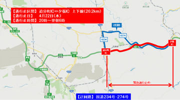 NEXCO東日本、4月22日20時から道東道の追分町IC~夕張IC間で緊急の夜間通行止め