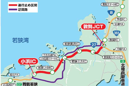 NEXCO中日本、舞鶴若狭道の小浜IC~敦賀JCT間で夜間通行止め