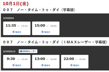 TOHOシネマズ、10月1日からレイトショー再開。007/ノー・タイム・トゥ・ダイなど