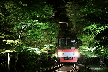 叡山電車、7月1日から「もみじのトンネル 深緑のライトアップ」を実施