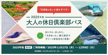 新幹線も5日間乗り放題「大人の休日倶楽部パス」11~12月利用分が発売。東京~新青森往復だけでも1万円以上お得に