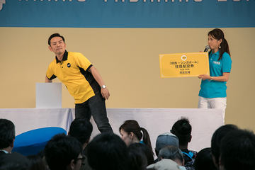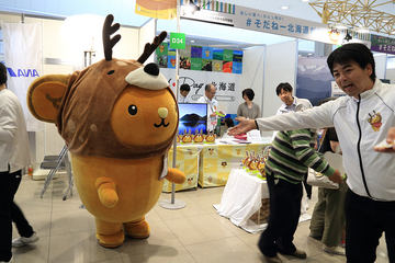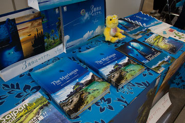 【関空旅博2018】沖縄県は産品販売や久米島の白い砂浜をPR。宮古島市は目の前で黒糖を割って来場者にプレゼント