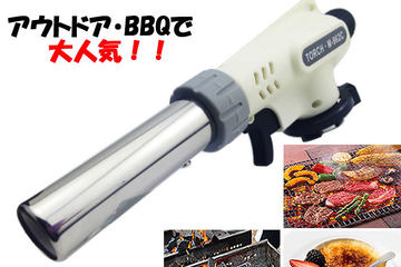 市販カセットボンベで使うガストーチ。炎の形を調節できるつまみ付き