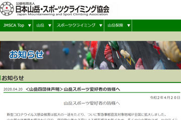 山岳四団体、登山やクライミング行為など「山岳スポーツ自粛」を呼びかけ