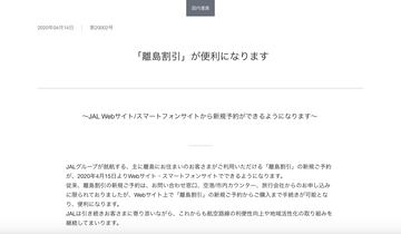 JAL、離島に住む人向けの「離島割引」予約をWebサイトから利用可能に