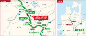 NEXCO東日本、5月~7月に東北道の十和田IC~小坂IC間で終日対面通行規制