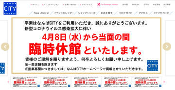なんばCITY、なんばパークス、なんばスカイオが4月8日から臨時休館