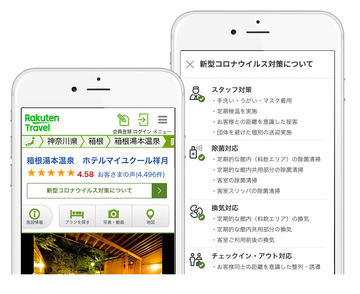 楽天トラベル、国内宿泊施設の新型コロナウイルス対策状況を公開