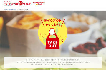 ホットペッパーグルメ、テイクアウト対応店の特集ページを公開。全国5234店、順次拡大予定