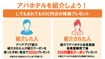 アパホテル、アプリ紹介で最大5000ポイント。してもされても特典付与