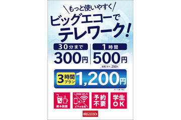 ビッグエコー、テレワークプランに「30分プラン」「3時間プラン」導入
