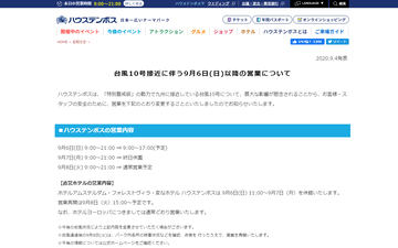ハウステンボス、食事中の会話時にハンカチなどを口に当てることを入場の条件に