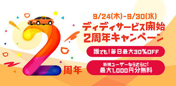 DiDi、毎日最大30%オフ。サービス開始2周年でクーポンコード配布