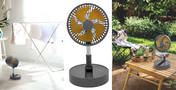 たためる扇風機「どこでもファン」。バッテリー内蔵でキャンプなど屋外でも