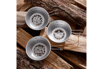 アウトドアの安全を祈願した「お守りシェラカップ」。善光寺 大歓進で護摩祈願
