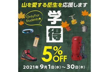 好日山荘、「秋の学得キャンペーン」。会員は学生証提示で5%オフ、ポイントも付与
