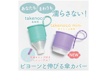 自分とまわりを濡らさない伸縮式傘カバー「takenoco」「takenoco mini」