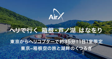 AirX、1日1室限定のヘリチャーター&露天付き旅館宿泊プラン発売。東京~箱根を約35分