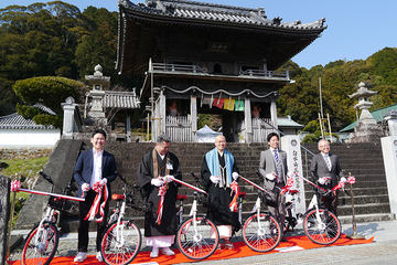 二十二番札所の平等寺で四国遍路をサポートするシェアサイクルサービス